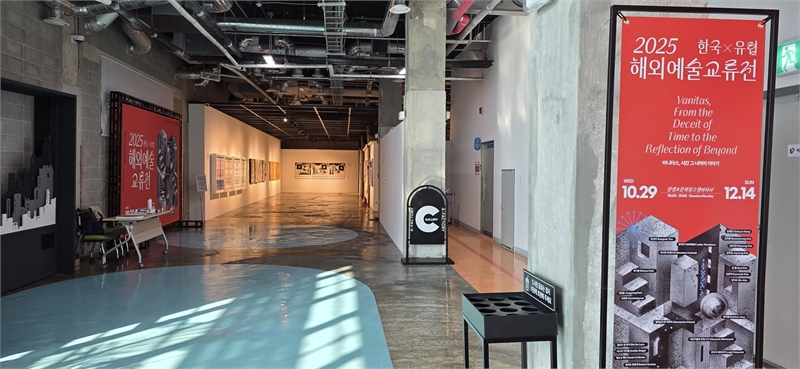 이 공간에서 열리고 있는 **「2025 한국×유럽 해외예술교류전」**은
